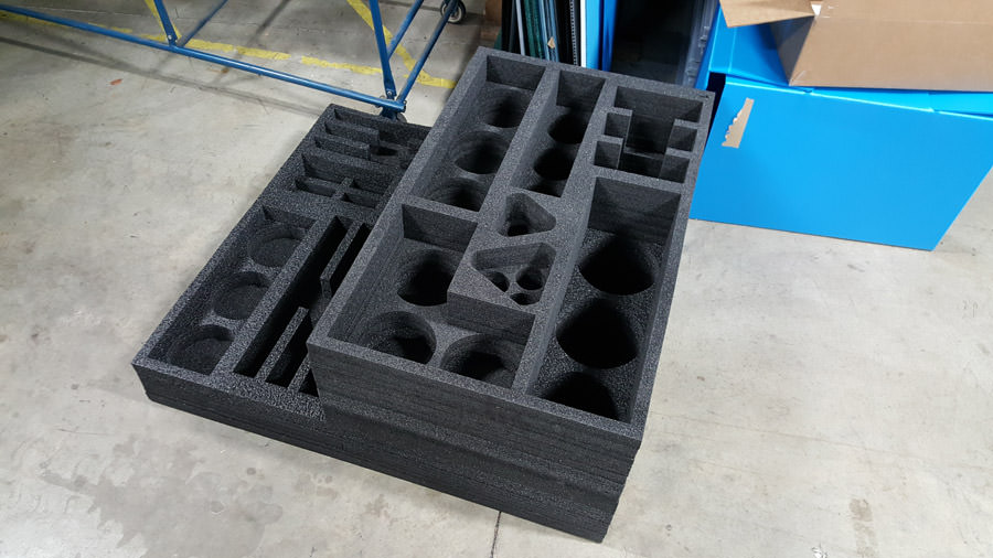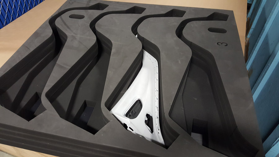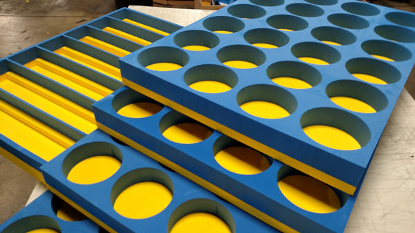 Waterjet foam cutting can be applied to many of our products. The most common applications are dividers, steel racks, plastic sleeves, plastic corrugated pads, totes, and bulk containers. It can also be applied to material handling applications and more. Our waterjet foam applications can be customized to fit many industry projects for countless purposes.